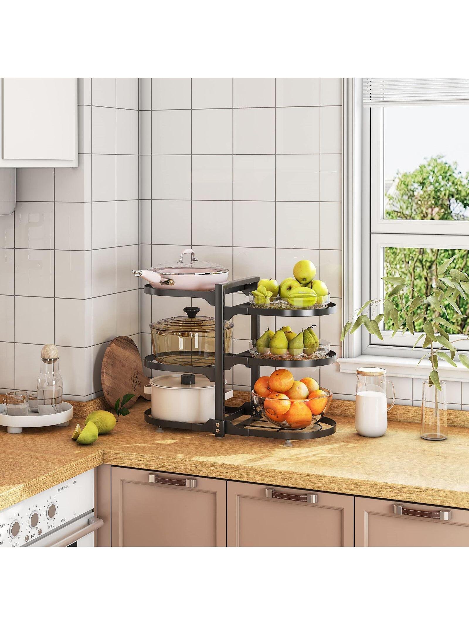[Adjust the Height As Needed] You can adjust the height of each tier of the pot and pan organizer for cabinet so you don't need to worry about the shelves not having enough space to fit your pots. Before purchasing, measure your cabinet size and read the product dimensions carefully to make sure our adjustable pan organizer fits inside your cabinet. Please refer to the product pictures for more detailed dimensions.